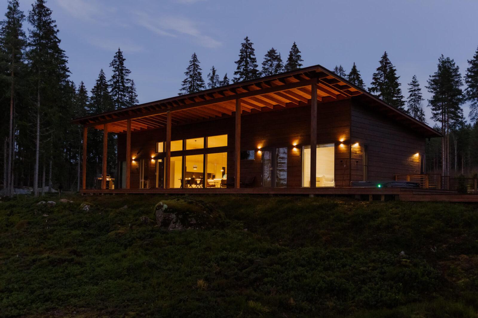 Lopputuloksena on villa, joka kutsuu luokseen. Se on paikka, jossa valo ei ainoastaan poista pimeyttä, vaan luo turvallisuutta, korostaa puun elävää pintaa ja tekee jokaisesta illasta elämyksen.